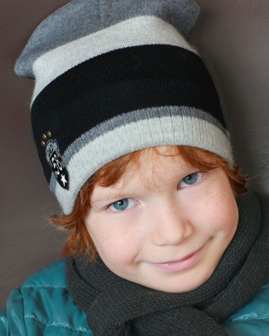 Этот головной убор универсален. Его наверняка по достоинству оценят и родители малышей, и те, кто подбирает зимние шапки для мальчиков-подростков. Изделие отличается лаконичным классическим дизайном, представленным полосатой расцветкой и небольшой нашивкой сбоку, и практичным фасоном. Оно прекрасно впишется в любой ансамбль и будет сочетаться с самой разной верхней одеждой.
