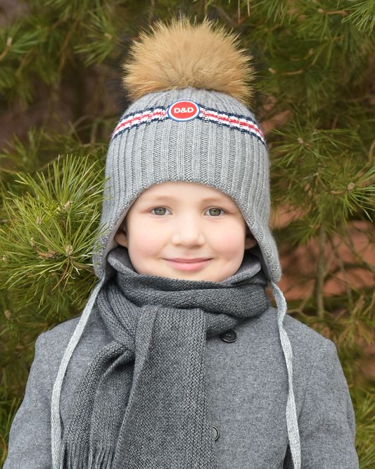 В состав этой шапочки входит акрил, натуральная шерсть и альпака, а также небольшой процент полиамида для повышения износостойкости изделия, так что оно долго будет радовать своим внешним видом. А ведь радовать есть чем: роскошный помпон, стильная вязка «резинкой» и лаконичный узор в виде синих, белых и красных полос. Маленьких модников эта модель не оставит равнодушными.
