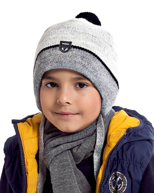 Шапка изготовлена из мягкого, приятного на ощупь акрила и дополнена подкладкой из поларфлиса. Это делает ее очень удобной, избавляя маленького модника от любого дискомфорта во время ношения.