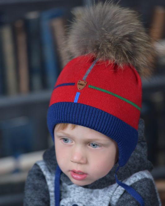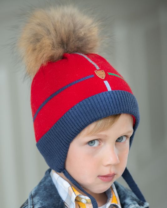 Декор: кожаный лейбл; Помпон: енот натуральный