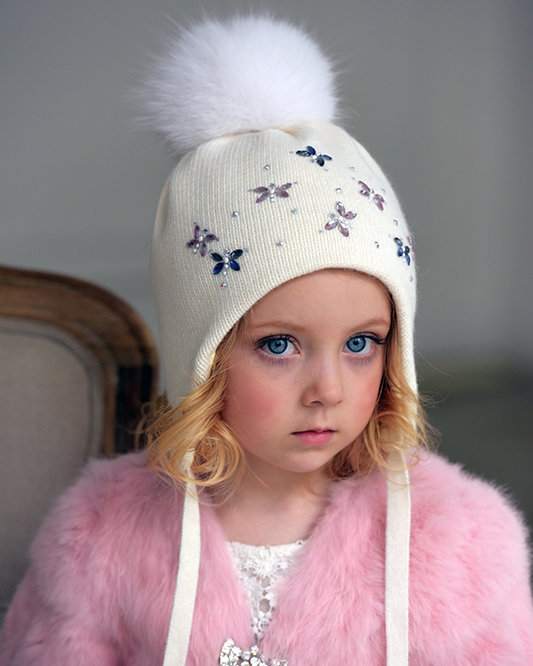 Достаточно сдержанная, но при этом не лишенная шарма модель «Джуди» прекрасно дополнит элегантный зимний ансамбль. Эта зимняя вязаная шапочка для девочки представлена в молочном,
