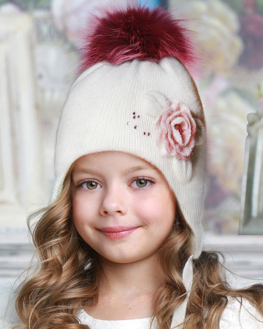 Шапочка на зиму для девочки должна не только соответствовать климатическим условиям. Для любой маленькой модницы важно, чтобы головной убор отвечал ее вкусам и предпочтениям и позволял ей выделяться среди сверстниц. Шапка «Лили» превосходно справляется с этими задачами. Благодаря роскошному цветочному бутону, украшающему изделие сбоку, и яркому помпону из крашеного меха на макушке шапка наверняка станет центральным элементом всего ансамбля.