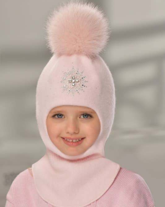 Шлем на подкладке с утеплителем, с мембраной на ушах. Декорирован помпоном из натурального меха песца в цвет изделия, с декоративной вышивкой, ювелирными стразами и брошкой.