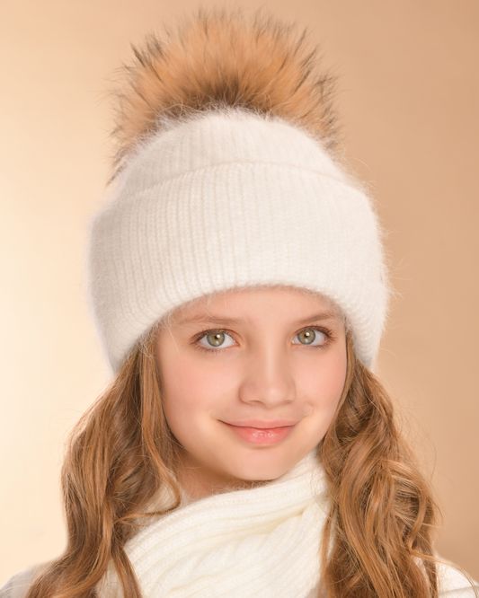 шапка на подкладке полар флис с отворотом, натуральный помпон, метал.лейбл