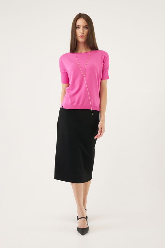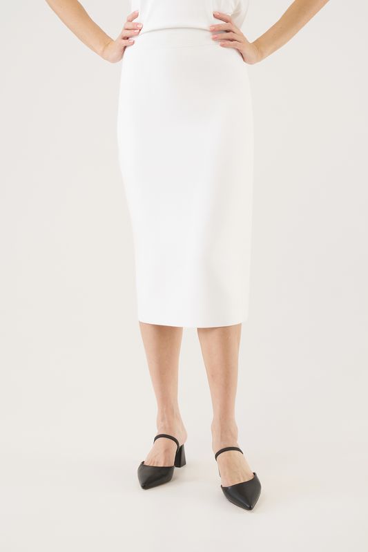 Юбка трикотажная, силуэт модели - карандаш. Связана из нежных вискозных нитей, благодаря которым нет скованности шага и можно двигаться легко и непринужденно. Классическое выполнение модели делает ее одной из составляющей базового гардероба. При этом, можно позволить себе носить ее и с любыми вещами неформального стиля. При комплектации с джемперами TRICOTIER тоновой расцветки, получается вариант идеального костюма, в котором можно выглядеть стильно и современно как на работе, так и на любых вечерних мероприятиях и праздниках.