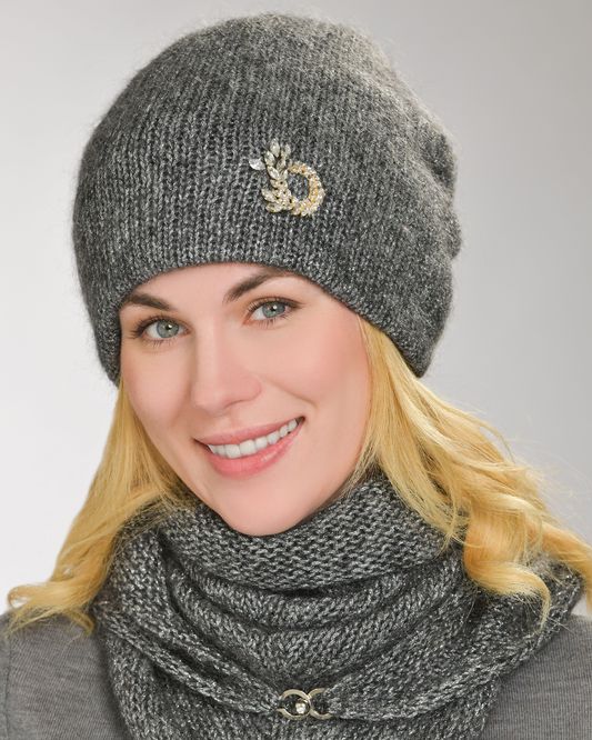 шапка двухслойная, декорирована брошью с ювелирными камнями, сзади закрепка для придания формы