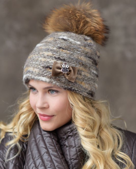 Декор: бархатный бант, ювелир. брошь; Помпон: енот натуральный